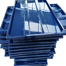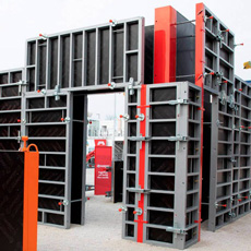 Mild steel panels used for strong reusable concrete formwork.
